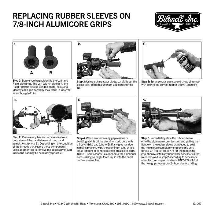SKU: 6709-0178Now for 7/8" AlumiCore throttles. Breathe new life into your Biltwell AlumiCore grip sets with a fresh pair of these replacement sleeves. Constructed of UV and weather resistant TPV rubber compound.