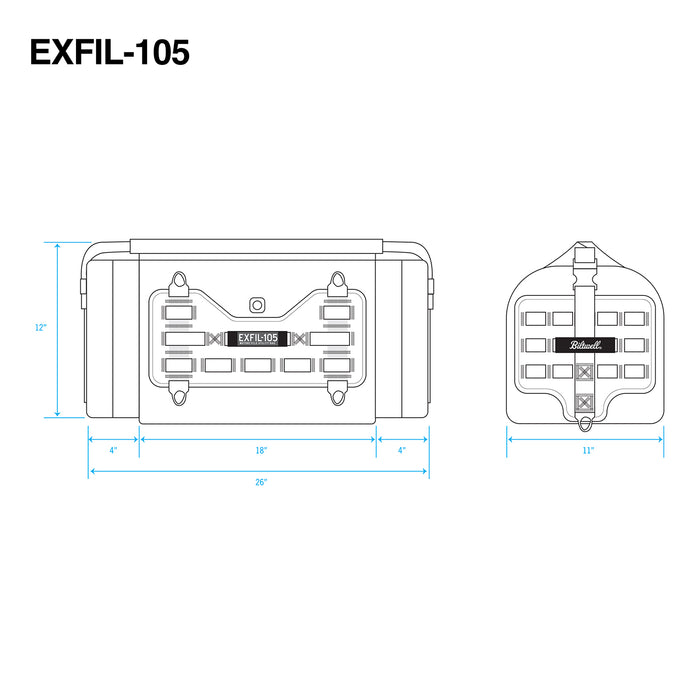 This bag is big! 26” long x 11” wide  x 12” tall. We measure our interior volume in beer cans. This one, as the name implies can fit 105 frosty pops. Of course, it’s really meant to haul gear for long trips and it excels at that. The center compartment is completely water- and dust-proof. MOLLE webbing on all sides allows more gear to be attached and there are eight built-in tie-down points for true universal fit using your own straps. The EXFIL-105 is meant to be mounted sideways across a seat and over saddlebags or on a rear rack that is large enough to accommodate it. The FVT (Fart Valve Technology) allows the user to bleed air out of the center compartment to allow for full compression. This means you can cram more stuff inside and it’ll move around less.