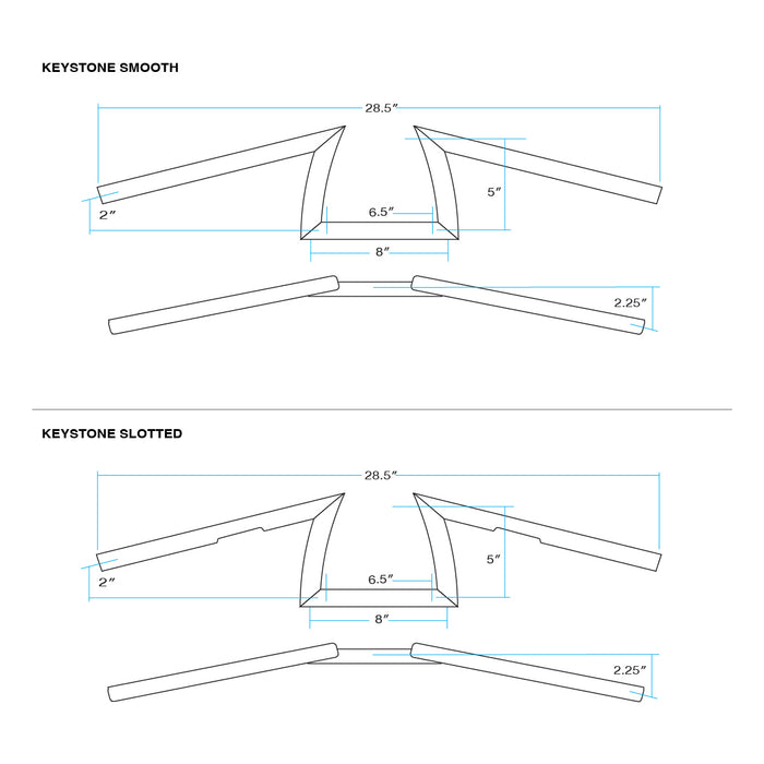 Engineered to deliver comfortable ergonomics and classic chopper style, our Keystone is a top choice among home and pro bike builders worldwide. These handlebars are constructed with seamless CNC mandrel bent 0.120” wall 4130 chromoly tubes. Available smooth for custom application or slotted to accept OEM Harley-Davidson hand controls.