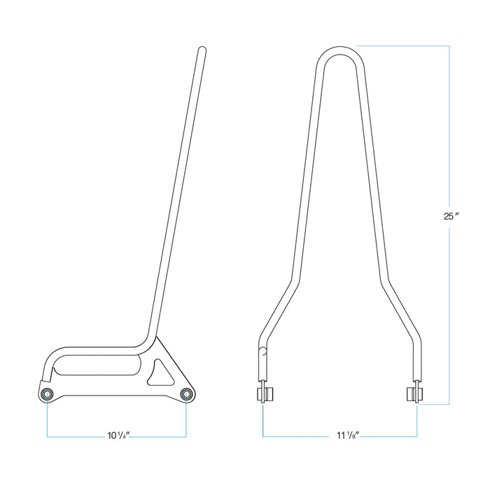 SKU: 5003-101EXFIL Sissy Bar makes hauling people and gear on select Harley-Davidson motorcycles easy. Ruggedly constructed with 5/8-inch O.D. bar stock and 0.20-inch (5mm) thick plate material, hand TIG welded for strength, then chrome plated or gloss black powdercoated for protection from the elements. 25” height from mounting bungs to the top and built-in tie-down points on each side make securing our EXFIL® moto luggage easy..