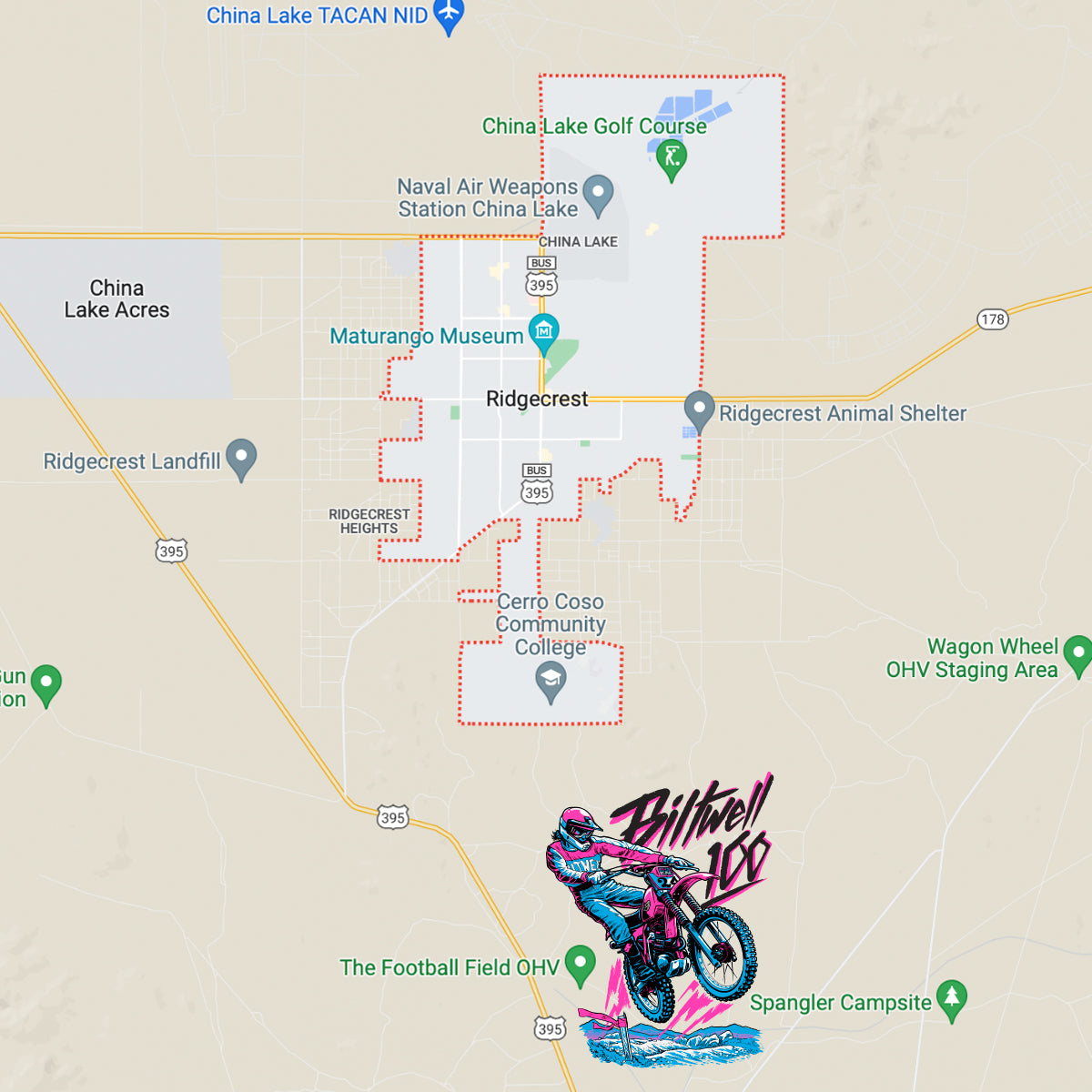 The Start-Finish area is easily accessible off HWY 395 and is no problem for choppers, motorhomes or non-4×4 vehicles. Make sure to stay out of the “Live Pit” areas and at least 150’ from the race course at all times. Otherwise, spectating can be done anywhere along the race course and surrounding areas as long as that 150’ distance is maintained. Bring a dirt bike, quad, side-by-side or buggy and enjoy the trails before, during and after the race. Camping is “dispersed” and free of charge. This area is BLM land, so all the usual rules apply and we expect you to leave it cleaner than you found it. There will be a party in the Start/Finish area with trophies, etc on Saturday night. More details to come.