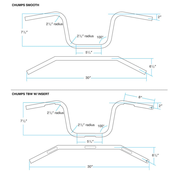 These handlebars are constructed with seamless CNC mandrel bent 0.120” wall 4130 chromoly tubes. Available in smooth for custom applications and have no slots, dimples or castellated ends.