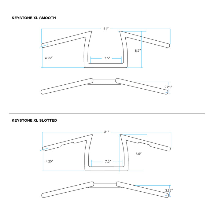 Engineered to deliver comfortable ergonomics and classic chopper style, our Keystone is a top choice among home and pro bike builders worldwide. These handlebars are constructed with seamless CNC mandrel bent 0.120” wall 4130 chromoly tubes. Available smooth for custom application or slotted to accept OEM Harley-Davidson hand controls.