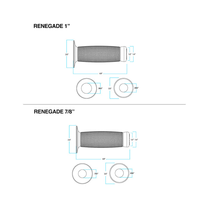 These grips are factory mistakes that came in a kinda odd Light Grey color that we didn’t like enough to add to the current line of Biltwell grips. They are brand-new, in the box and ready to slide onto just about any motorcycle that accepts rubber grips. In each pair of grips, one has an inside diameter that's sized for the handlebar side and the other has a slightly larger inside diameter to slide onto a conventional throttle. Available in 1" or 7/8" options.