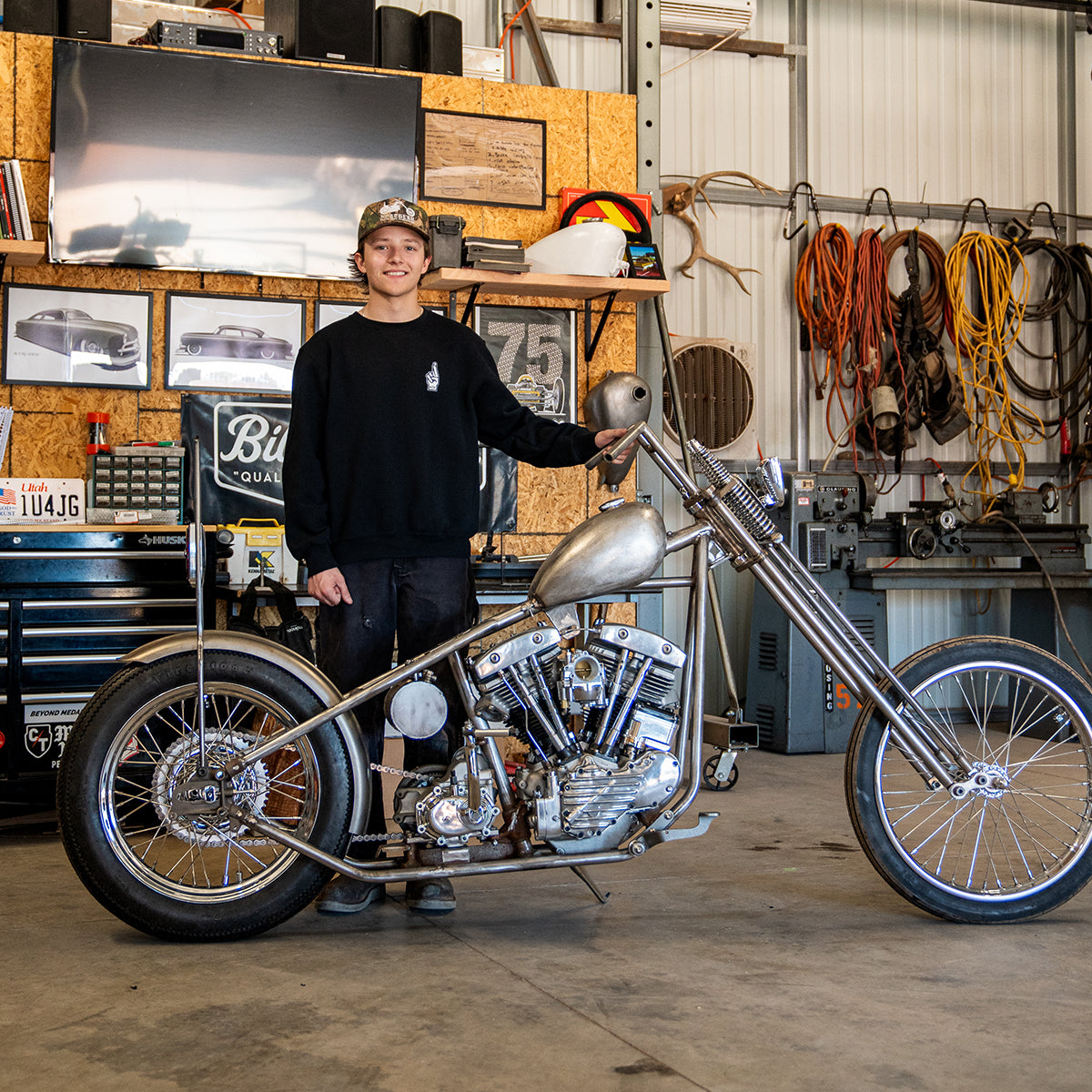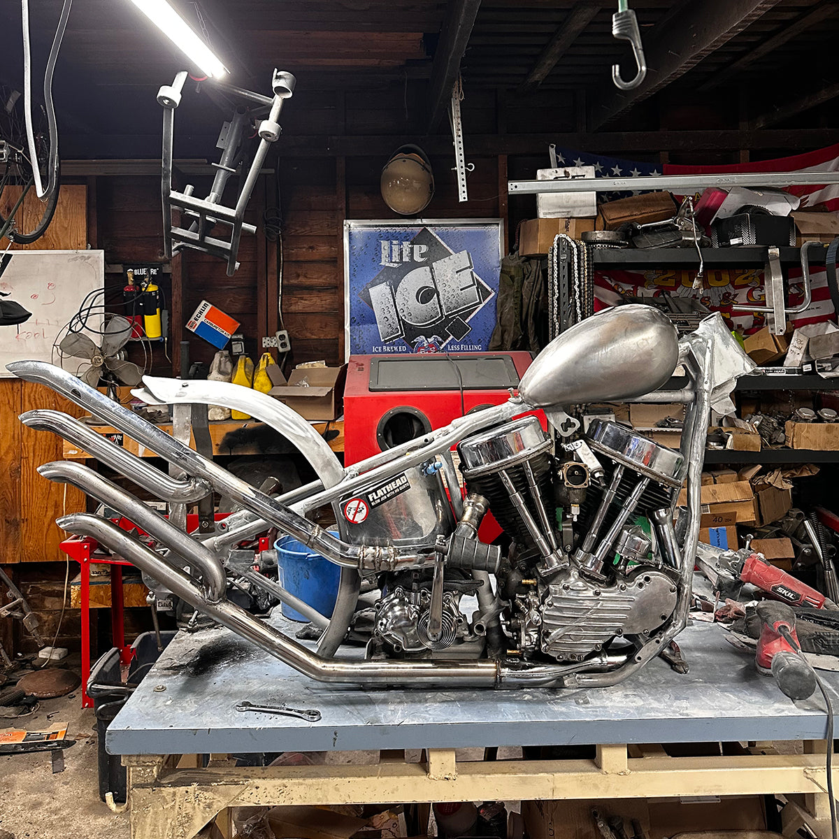 Big thanks to Gary Ginsely for the help with my frame, and Mikey for giving me a wicked high quality paint job on a super short deadline. Thank you to my girlfriend Kelly, she has been super supportive in making sure I was fed and helping me take care of day to day tasks so I could spend the majority of my time in the shop. Lastly shout out to the PA/NJ/NY ACMA and the tightnight community that is the east coast chopper scene!