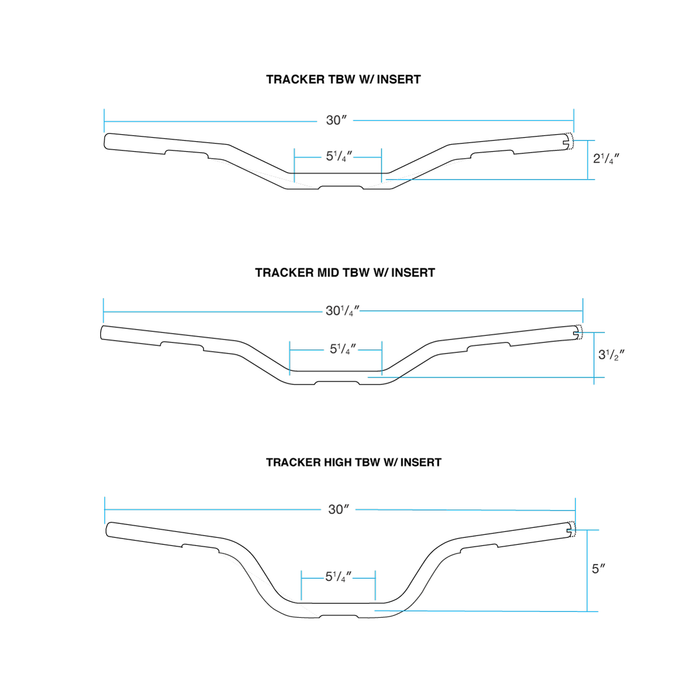 SKU: 6009-2017The top-selling handlebar in our range, and for good reason. Our Tracker bars come in 1" O.D.'s and three heights, and look great in any stock or aftermarket riser you can imagine. Constructed with seamless CNC mandrel bent 0.120” wall 4130 chromoly tubes and available as a TBW w/ insert application. These handlebars work with regular, cable-operated throttles, and if you remove the black end plug it will accept Harley's Throttle-By-Wire control module. These bars have slots on each side for stock H-D hand controls and an exit slot in the center for internal wiring.